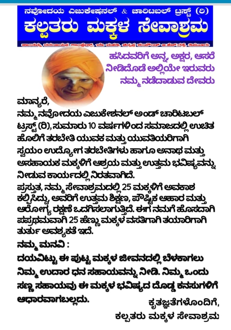 Kalpataru Makkala Sevaashrama is a child-care and support initiative run under